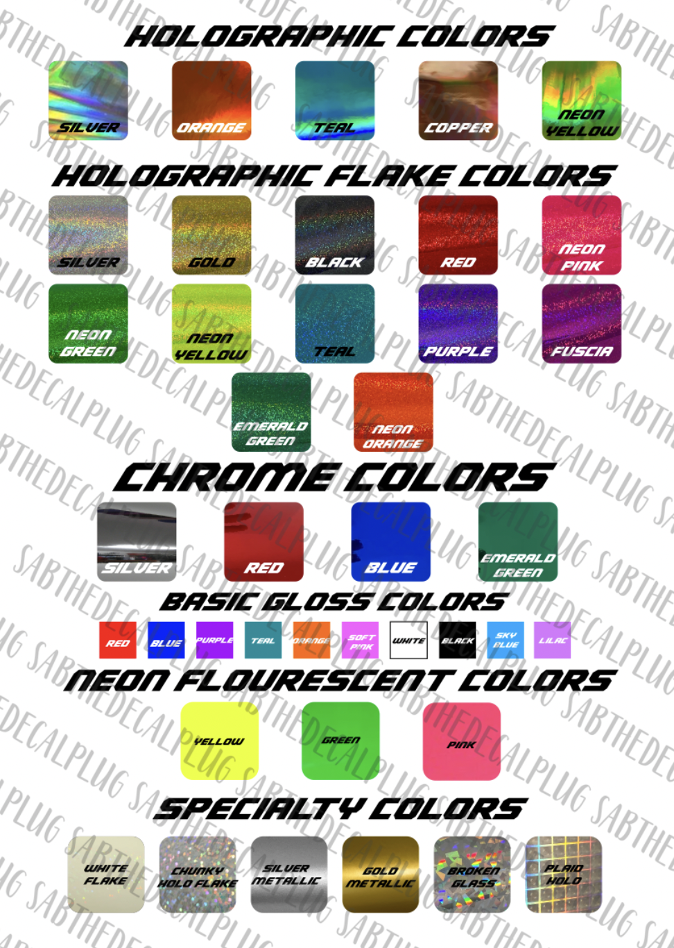 Please see the color chart above for all currently available colors - please also note that inventory and available stock may vary and/or cause delays if it is out of stock at the time you order - we try to place reorders as often as possible to keep all colors in stock.